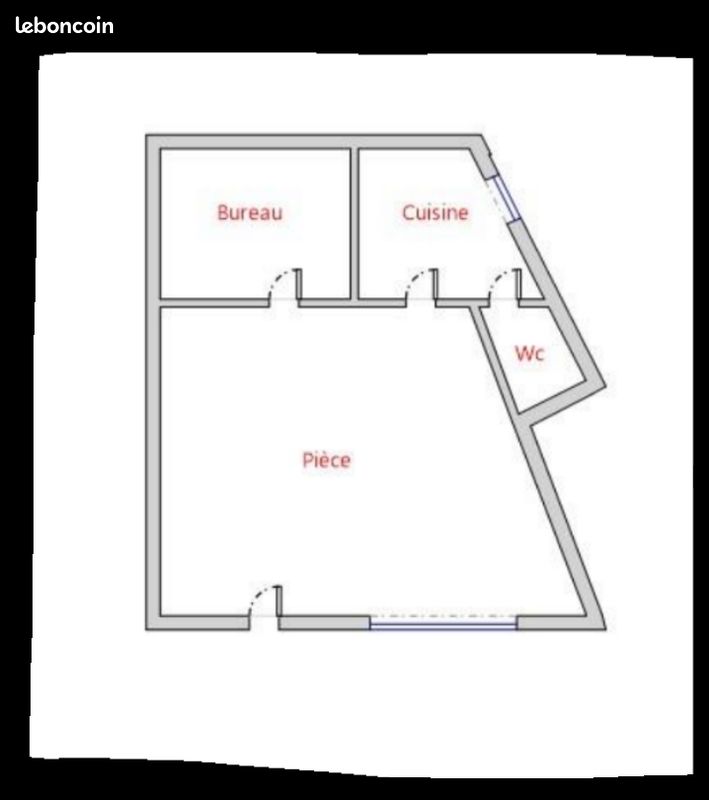 Situé au rez de chaussé, il se compose d'une pièce avec 2 grandes vitrines (35m2), d'un bureau (8m2), d'une cuisine (8m2) et d'un Wc.